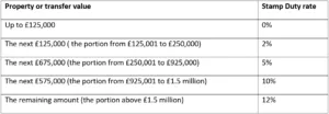 In 2025/26, the Stamp Duty rates are: